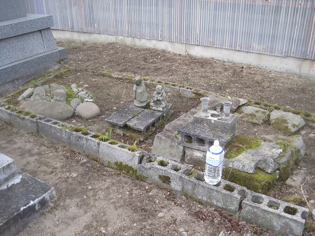 子供の石コロに氏は無く名と年齢だけを書いた石コロ墓が沢山ある